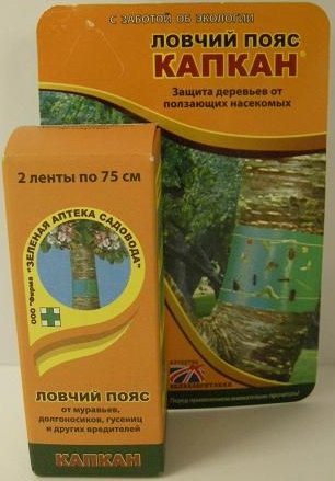 * влагостойкий, невысыхающий клейкий пояс ловит, как Капкан передвигающихся по стволу вредных насекомых