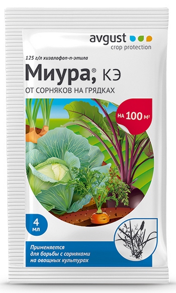 Миура - послевсходовый системный избирательный гербицид против однолетних и многолетних злаковых сорняков. Применяется на картофеле, луке и капусте, действуя избирательно, не повреждает культуры. На газонах использовать нельзя.