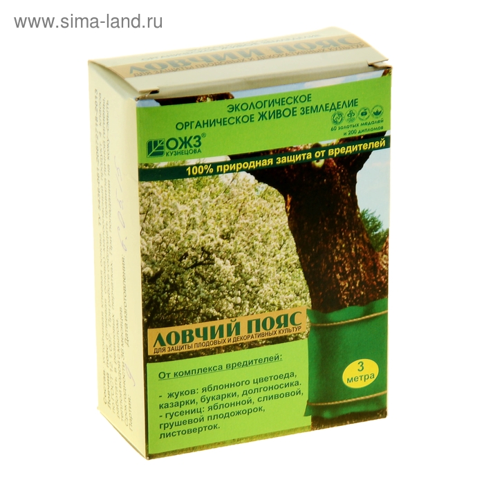 Ловчий пояс предназначен для защиты деревьев от вредных ползающих насекомых: гусениц, цветоедов, долгоносиков, муравьев, переносящих на деревья тлю) поднимаются от земли по стволу вверх и прилипают. Таким образом листва, цветки и крона деревьев будут защищены. Ловчий пояс является экологически безопасным, не содержит ядов.